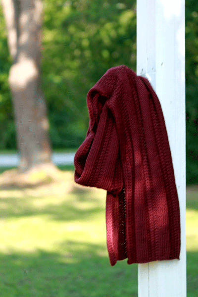 Ashton-Garterstitch-scarfI tried to coax this one to model my Keyhole scarf-he was not pleased.  Looking back with the clarity of hindsight, I’ve had better ideas.