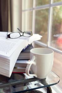 A+cup+of+coffee+with+a+stack+of+books