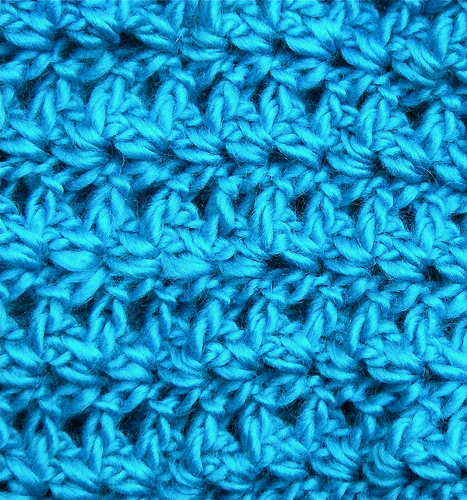 Experts, put your fingers in your ears…. OK- to me, crochet is essentially the tying of intricate little interwoven knots. (Not to be confused with macrame or any craft that really is about knots.) But essentially, you use your crochet hook to weave the yarn into intricate knotting. Experts can remove their fingers from their ears now. The outcome creates a fabric that is usually (not always) much more textured than knitting. Like this…