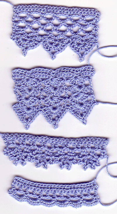Yet another variation on this pattern. The stitches were relaxing. It was a very zen creation. Fewer colors, a single repeat of the lace pattern, simpler edging…